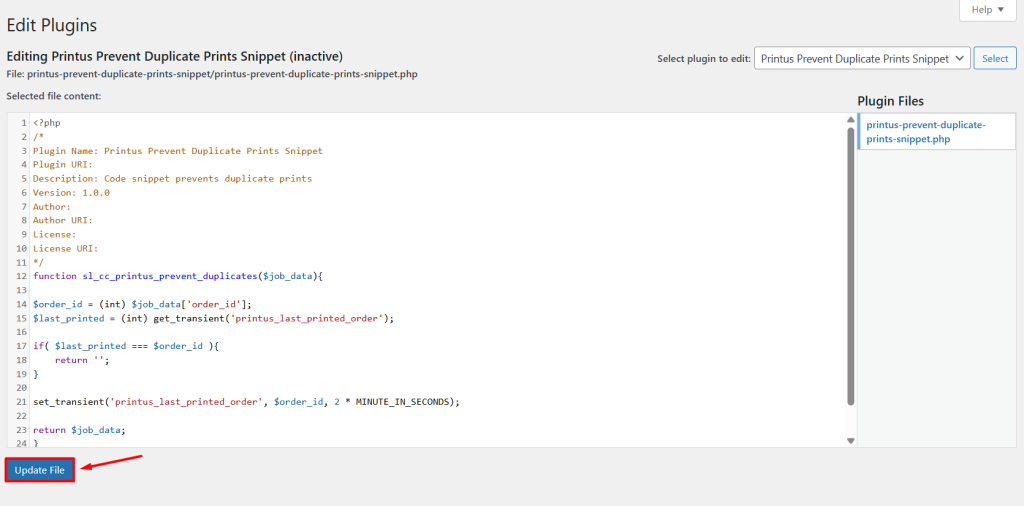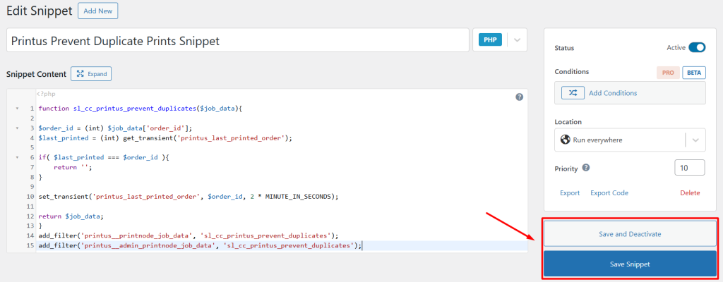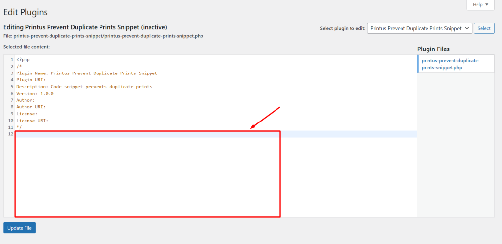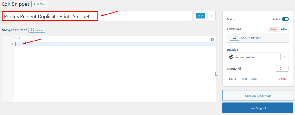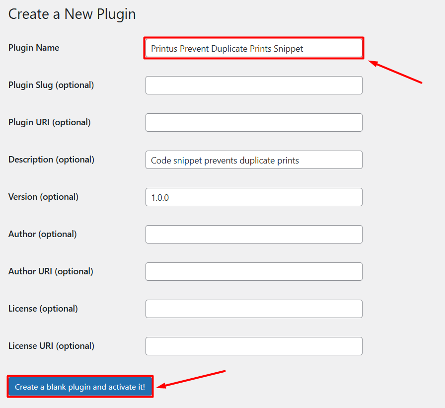 Enter your desired plugin name and description and then paste in the code snippet you wish to implement on your website. After saving your changes head over to the plugins area of your WordPress dashboard and make sure your newly created site-specific plugin is activated.