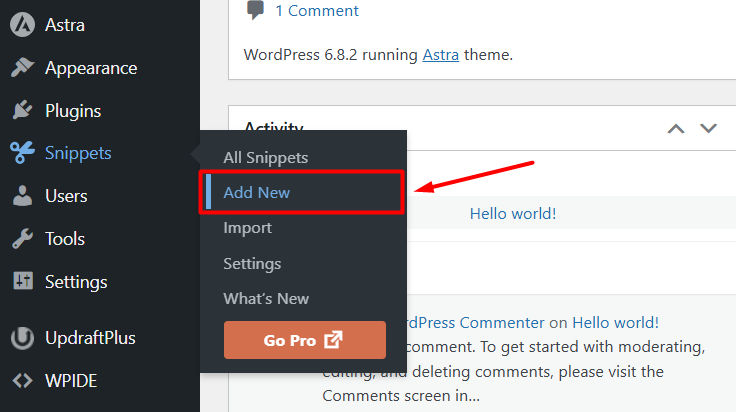 A snippet plugin can be installed on your website to manage all your snippets. One such example include: https://wordpress.org/plugins/code-snippets/